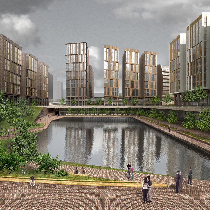 до 30 этажей с подземным паркингом и благоустроенным общественным пространством.